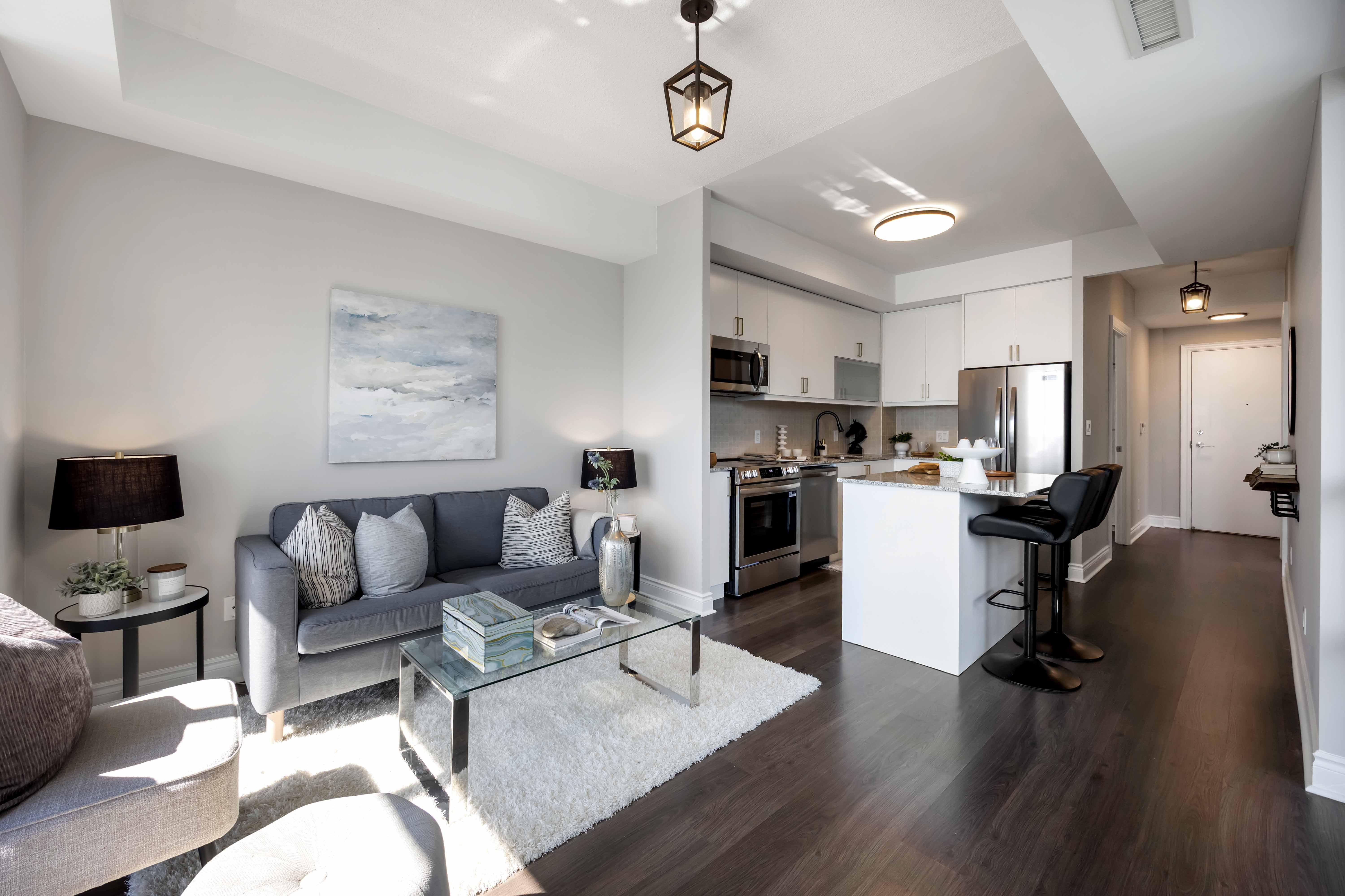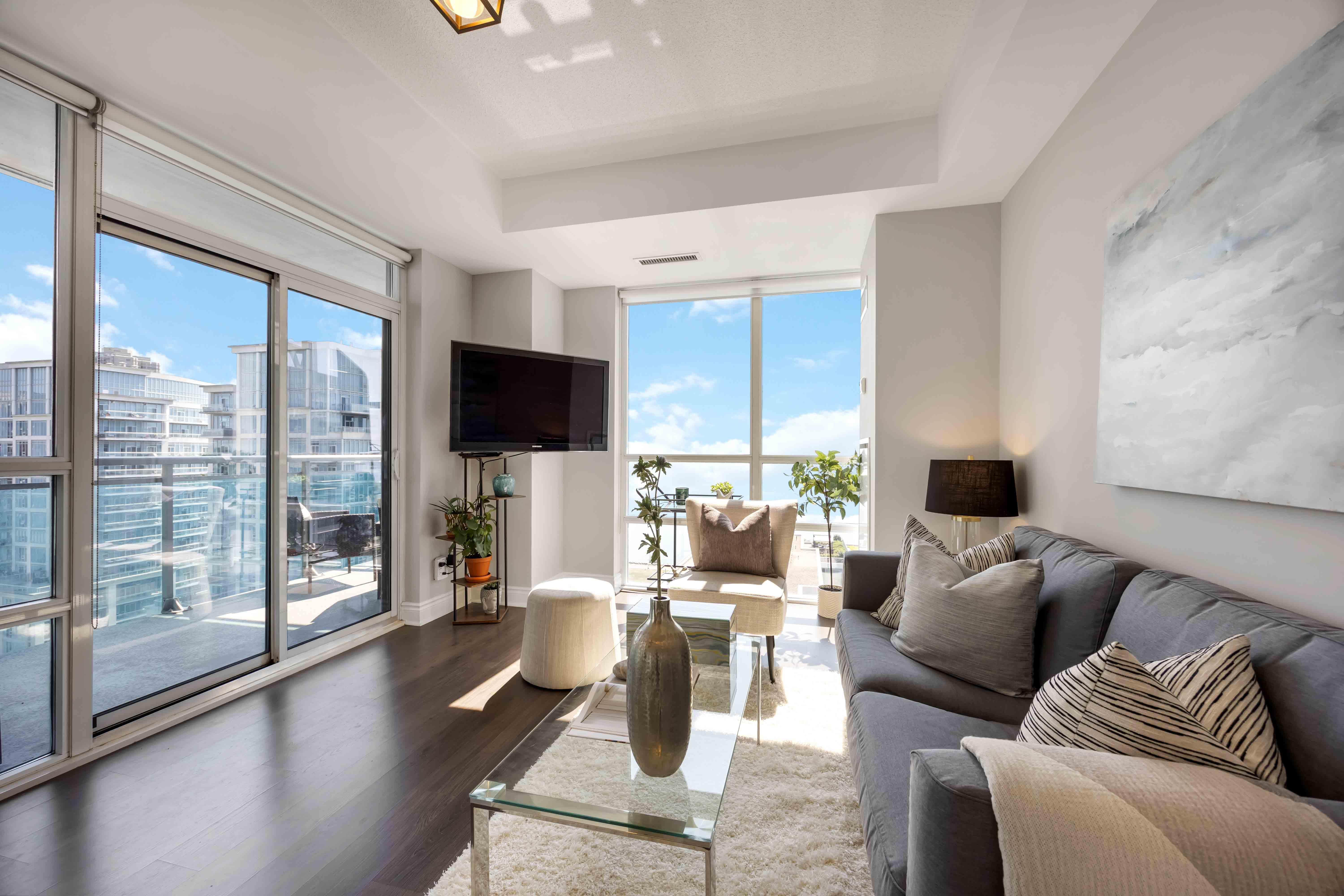 Enjoy a coffee basking in the southern sunlight while overlooking your unobstructed million-dollar view of the Toronto skylineeach morning! This 1 bed 1 bath with parking and locker is one of the best layouts in the building. The kitchen features brand new Frigidairestainless steel appliances, refinished cabinetry with updated hardware, an under-mounted sink set into a granite countertop and usefulundercabinet lighting. A well-proportioned kitchen island with breakfast bar completes the space. The bedroom features its own walkout tothe large balcony and has a walk-in closet with closet organizer plus a new stacked LG washer and dryer for laundry. Freshly painted and newlighting added, this end-user property is set to be turnkey for a new owner. Humber Bay is an incredible location known for its accessibility tonature while retaining premium transit access to get downtown fast. TTC stops right in front of the building with access to the Bloor line and10 minutes to Mimico GO station. From an investment perspective: Nautilus is a well-managed building that will benefit from the incoming GOtransit hub planned right across the street and avoids traffic with it's premium access to get on and off the highway. Walking distance to HighPark, Sunnyside public pool, dog parks, soccer fields and tennis courts. It is a friendly, inclusive neighbourhood and has something foreveryone. Enjoy a front row seat to the Toronto Airshow each year! Nautilus is a quality build from Mattamy Homes and has 3 floors of high-level amenities that includes an indoor pool, whirlpool, gym, yoga room, sauna, billiards/games room, party room and a rooftop terrace withBBQs. 24 hour concierge in the lobby and a suite of smart lockers to make sure you always get your packages!