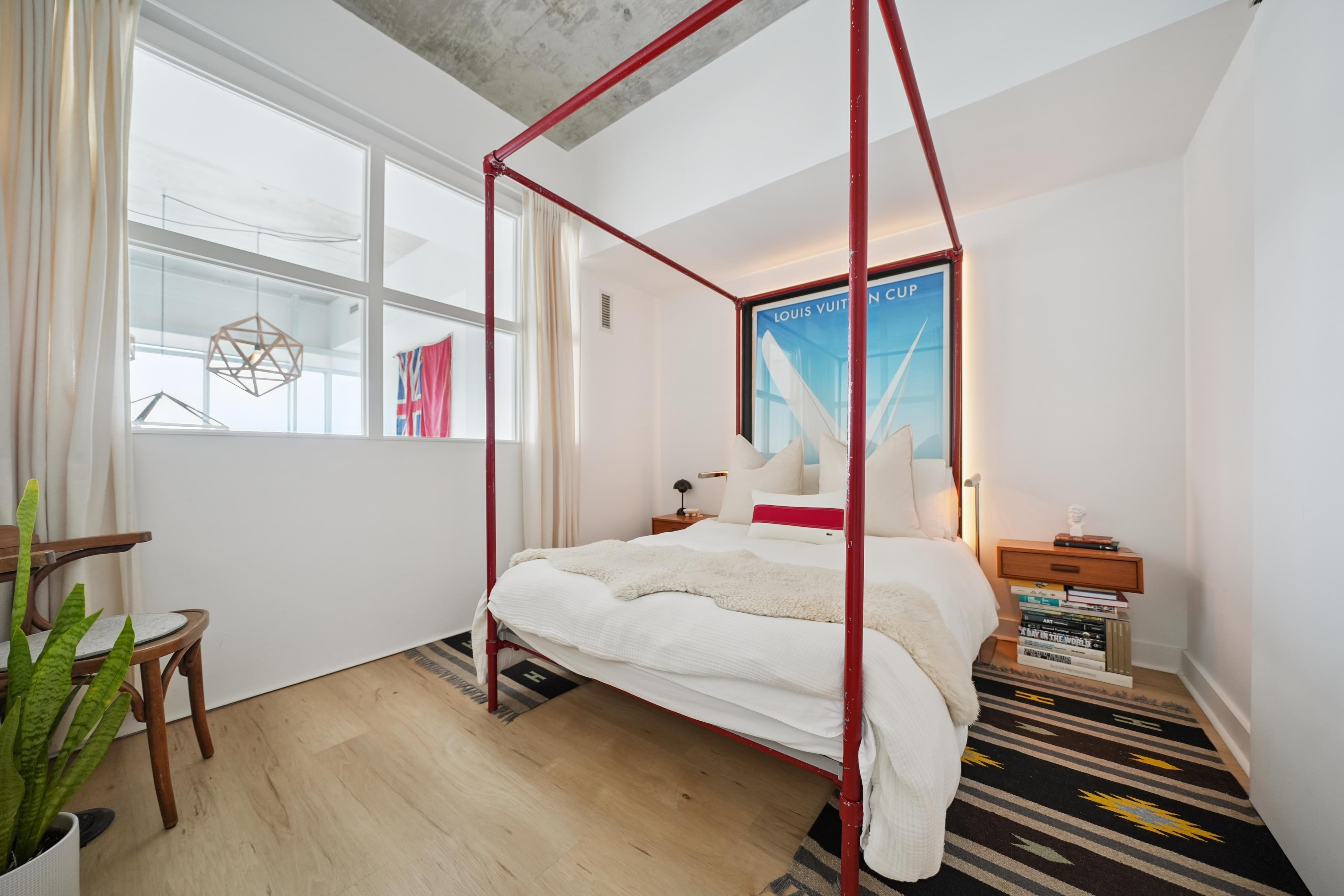 Rare, 2-storey 2 bedroom 775 sf loft with 1 parking at the prized Liberty Market Lofts. Curated wood design accents throughout the unit add warmth and zen feel - this property has the aesthetic appeal of what a loft should be. It's located on the quieter, less dense side of Liberty Village and it features floor-to-ceiling windows that let in abundant natural light and showcase beautiful sunsets overtop of the protected heritage-designated buildings surrounding it. An excellent use of space greets you at the door with custom fit hallway closets with a thoughtful setback to widen the entryway. An updated bathroom (tiles, mirror, lights, toilet) sits on the right and is followed by ample space under the stairs for storage or a perfect spot for a work desk. The open concept kitchen features an updated subway tile backsplash, built-in dishwasher and granite countertops. A recessed 2nd bedroom gives room to relax listening to the record player. Upstairs primary bedroom allows for genuine separation, ideal for couples or anyone wanting a comfortable live-work setup, while still preserving a sense of openness and view. The generous walk-in closet, 2nd floor laundry (w/ new Whirlpool stacked washer/dryer) and updated bathroom (tiles, walls and toilet) complete the upstairs space. The building is exceptionally well-managed and has outstanding maintenance fees. Amenities include: 24 hour concierge, well-equipped gym, yoga studio and even a hard to find half basketball court. There are multiple executive meeting rooms, business centre, tool/utility room, lounge with a kitchen, wet bar and pool table. There is even an art gallery with rotating art installations. A 4900 sq. m. park is being built beside the building that this unit will overlook and cafes, multiple grocery stores, pubs, professional services are all walkable. GO train (Exhibition) and the future Ontario line is 200 metres away and BMO field is right there too. Enjoy the World Cup this summer from your doorstep!